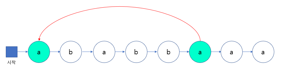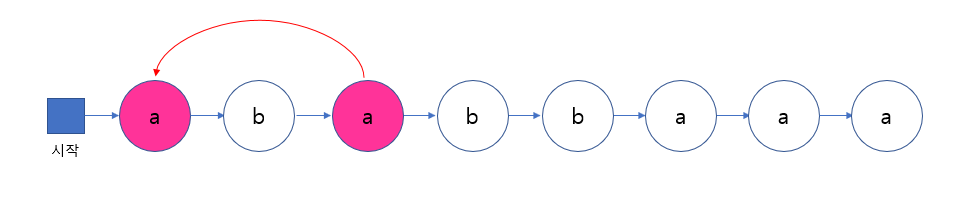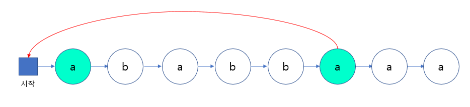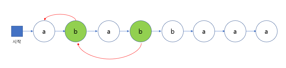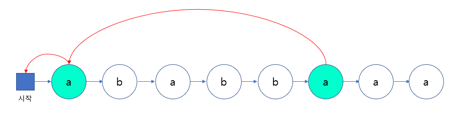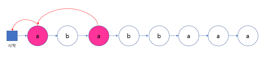 따라서 이미 next[]가 채워져있는것은 수정하지 않고, a 다음을 확인한다.