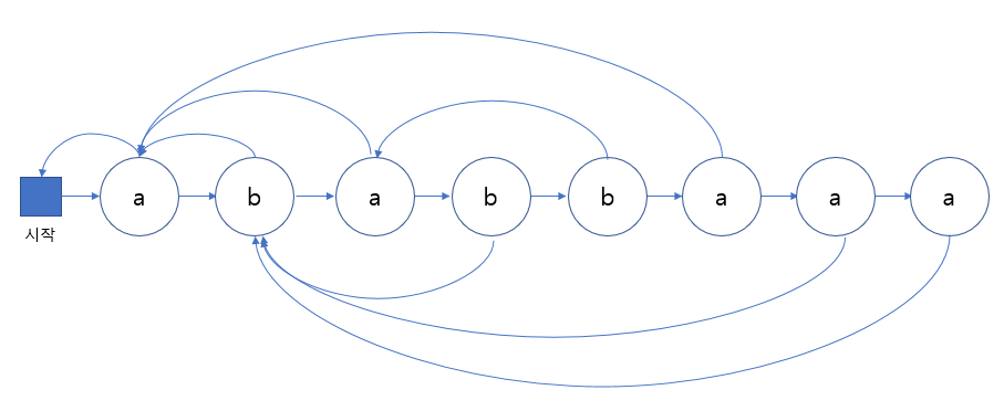 여기서는, 비교할 문장(A)과 대조하는 것이 아니라, 패턴(ababbaaa)과 패턴(ababbaaa)을 비교한다.