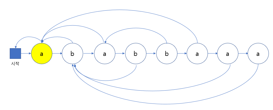여기서 FSM의 첫번째 문자인 a를 살펴보자.