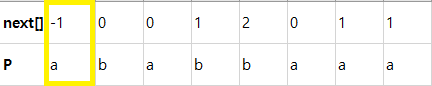 a 의 next인 next[0]에는 -1이 들어있다는 것을 의미한다.