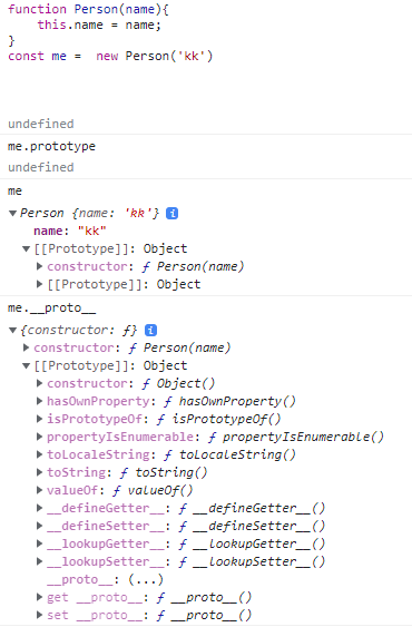 | prototype 프로퍼티 | 1. 특정 객체의 prototype이라는 속성 2. 프로토타입(프로토타입 객체, 부모 객체)를 가리킨다 ★기억해야 할 것 (1) 소유 주체가 누구인가~ (2) 무엇을 위한 프로퍼티인가 (3) 무엇을 참조하는가~ | (__proto__ 접근자 프로퍼티와 다르게,) 생성자 함수는 prototype 프로퍼티를 소유한다. ★prototype 프로퍼티는, 생성자 함수가 생성할 인스턴스의 프로토타입(프로토타입 객체, 부모 객체)를 가리킨다 => 프로토타입이 프로토타입을 가리킨다고 생각하면 혼란스럽다. 생성자 함수를 예로 들면, (1) 생성자 함수의 prototype 프로퍼티(속성)이 있다. (2) 생성자 함수의 prototype 프로퍼티(속성)은 객체를 가리킨다. (3) 이 객체는 생성자 함수가 생성할 인스턴스의 프로토타입(프로토타입 객체, 부모객체)이다. 객체의 프로토타입을 정의하는데 사용된다=> 생성자 함수가 prototype 프로퍼티에 속성,메서드를 추가 가능 생성자 함수가, 자신이 생성할 인스턴스를 위해 만든 것..... => 인스턴스의 프로토타입 객체(부모 객체)를 할당하기 위해 사용. ...why? 왜 따로 둔 것이지?=> 아.. 재사용성! | function Person(name){ this.name = name; } const me = new Person('kk') Person.prototype.sayHello = function(){ console.log('hello')} me.prototype.sayHi = function(){ console.log('hi')} //오류! |